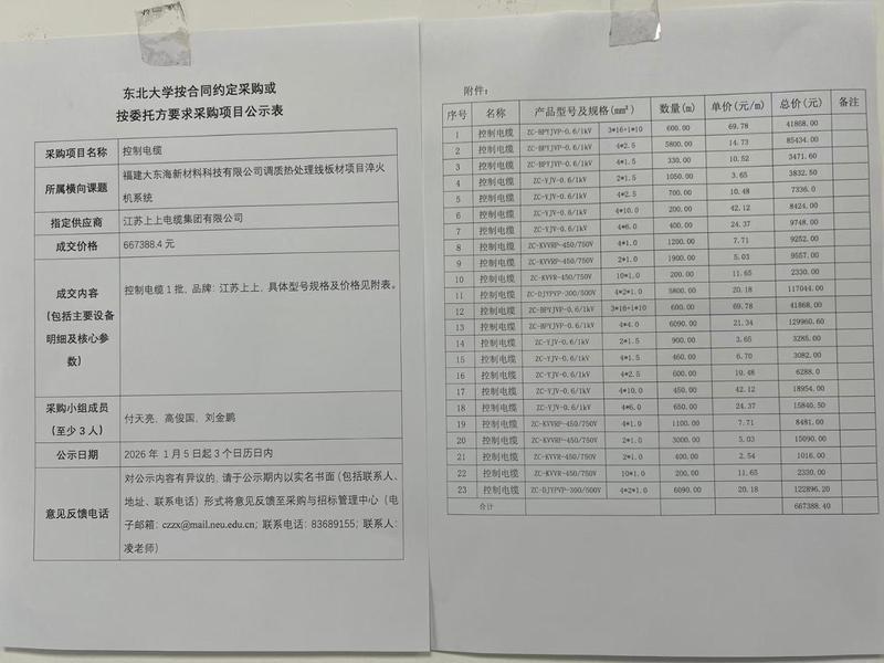 对公示内容有异议的潜在供应商,请于公示期内以书面形式(包括联系人、地址、联系电话)将意见实名反馈至东北大学采购与招标管理中心(联系电话:024-83689155;联系人:凌老师)。